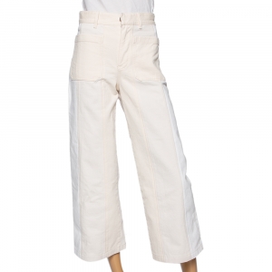 Dior White & Cream Paneled Denim Wide Legged Jeans S