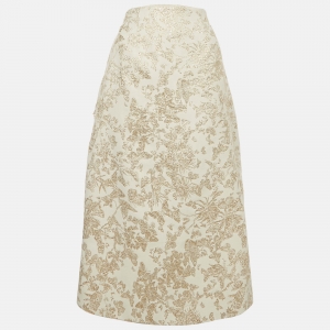 Christian Dior White & GolD Brocade Pencil Skirt S