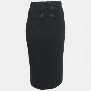 Christian Dior Black Wool Button Embellished Pencil Skirt S