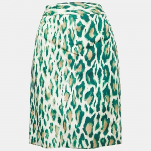 Christian Dior Green Animal Print Silk Pencil Skirt S