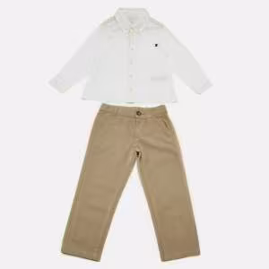 Gucci Kids White / Brown Cotton Shirt & Pants Set 18/24 Months
