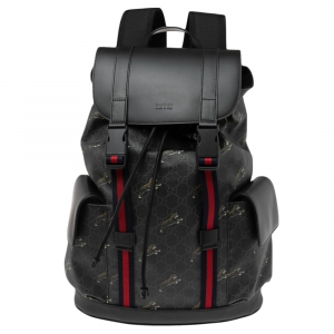 Gucci Black GG Supreme Canvas and Leather Angry Cat Backpack