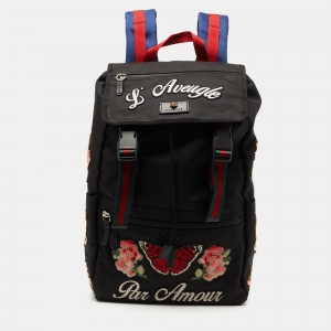 Gucci Black Mesh Fabric Hollywood Embroidered Backpack