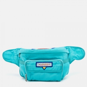 Gucci Turquoise Blue Fabric Convertible 80’s Logo Patch Belt Bag