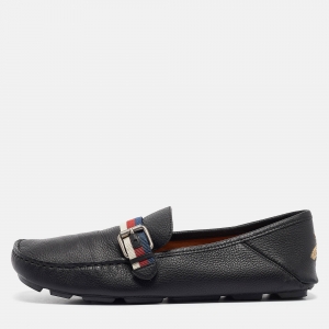 Gucci Navy Blue/Black Leather Jordaan Loafers Size 47