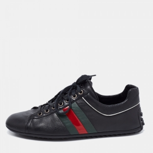 Gucci Black Leather Low Top Sneakers Size 43