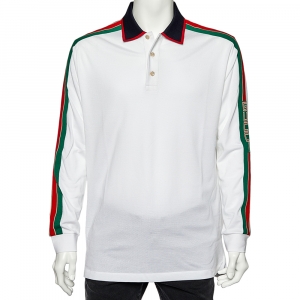 Gucci White Cotton Pique Crest Applique Detail Polo T-Shirt S