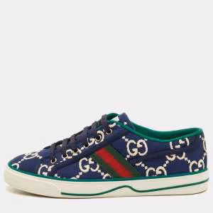 Gucci White/Blue Leather Falacer Sneakers Size 44