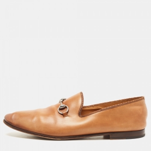 Gucci Brown Leather Jordaan Horsebit Loafers Size 41.5