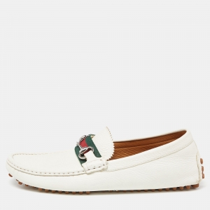 Gucci White Leather Web Slip On Loafers Size 41