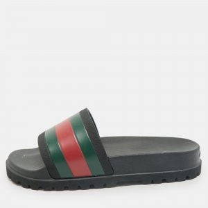 Gucci Multicolor Rubber Web Accent Rubber Slides Size 40