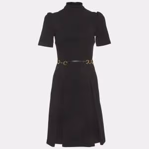 Gucci Black Leather Interlocking G Buckle Belt 85CM
