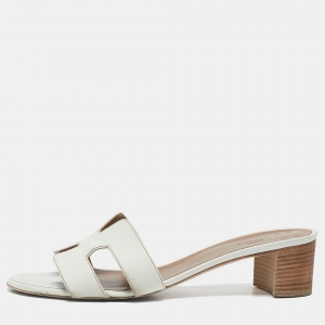 Hermes White Leather Oran Sandals Size 40