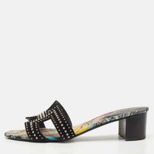 Hermès Black Suede Crystal Embellished Oran Flat Slides Size 40