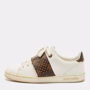 Louis Vuitton White/Brown Monogram Canvas and Leather Frontrow Lace Up Sneakers Size 38