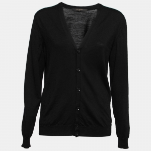 Louis Vuitton Black Silk & Cashmere Knit Button Front Cardigan M