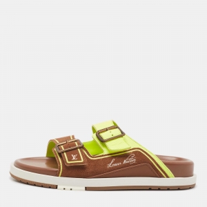 Louis Vuitton Brown Leather and Canvas Criss Cross Slides Size 42