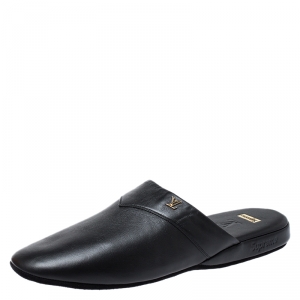 Louis Vuitton Black Leather Flat Sandals Size 43
