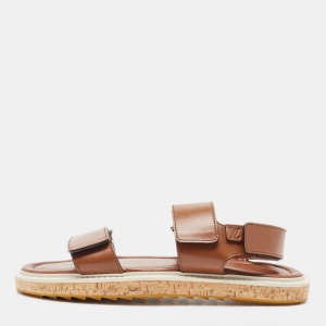 Louis Vuitton Brown Leather Criss Cross Flat Sandals Size 40