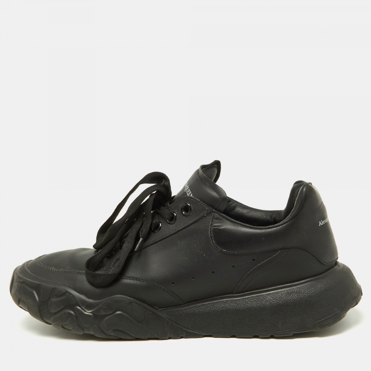 Alexander McQueen Black Leather Oversized Runner Low Top Sneakers Size 44
