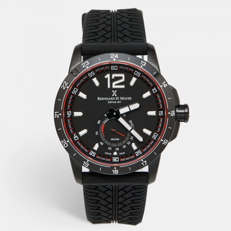 Bernhard H.Mayer Black PVD Coated Stainless Steel Silicone Drift Glider BH11/CW Men's Wristwatch 44 mm