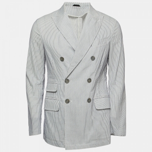 Giorgio Armani Blue Striped Cotton Button Front Shirt M