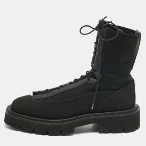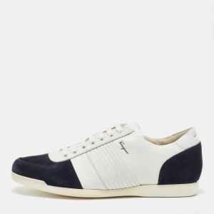 Salvatore Ferragamo Black/Cream Fabric and Leather Low Top Sneakers Size 41.5