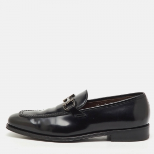 Salvatore Ferragamo Black Leather Gancio Slip On Loafers Size 44