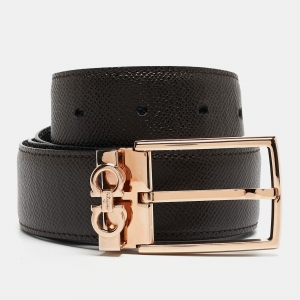 Salvatore Ferragamo Black/Brown Leather Cut to Size Reversible Gancini Belt