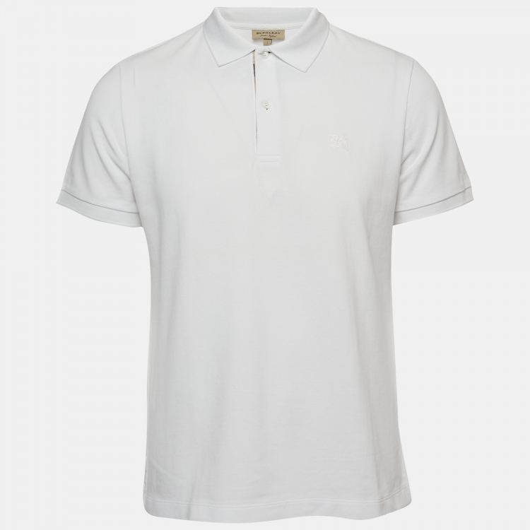 مملوكة مسبقًا Burberry White Cotton Pique Polo T-Shirt L