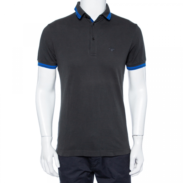 Pre Owned Dior Grey Bee Embroidered Cotton Pique Polo T-Shirt M