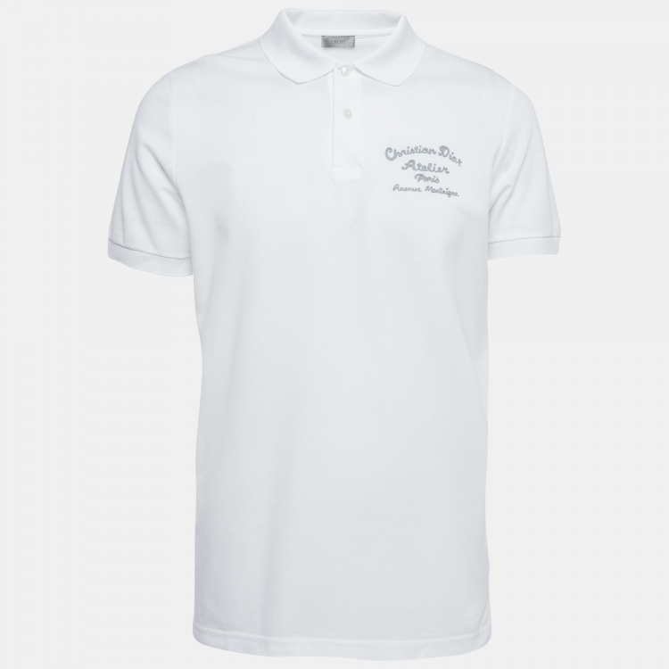 Dior White Cotton Pique Embroidered Polo T-Shirt L