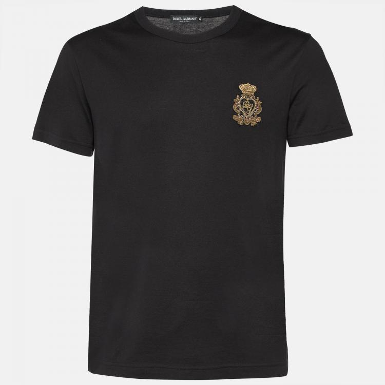 Dolce & Gabbana Black Cotton Embroidered Motif T-Shirt S