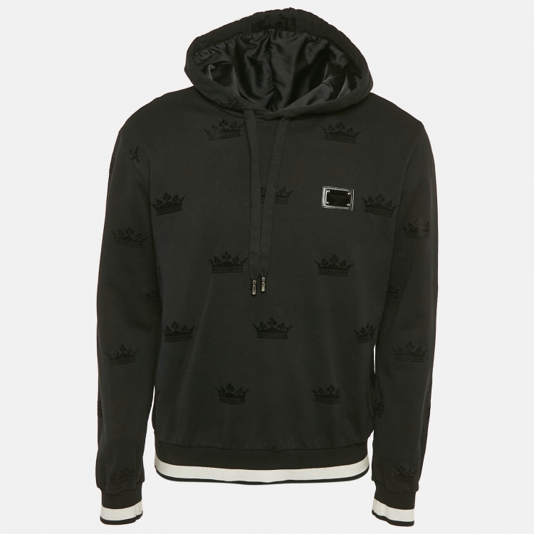 Dolce & Gabbana Black Crown Flocking Cotton Knit Hoodie L