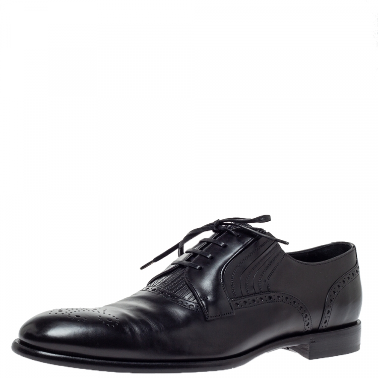 Dolce & Gabbana Black Leather Brogue Detail Derby Size 45