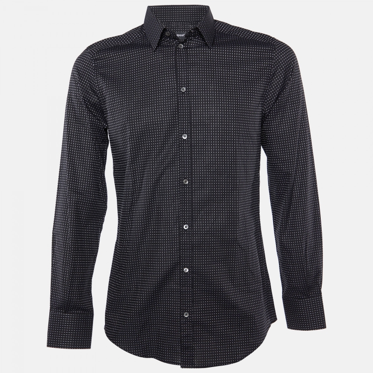 Pre Owned Dolce & Gabbana Black Square Patterned Cotton Gold Fit Shirt M