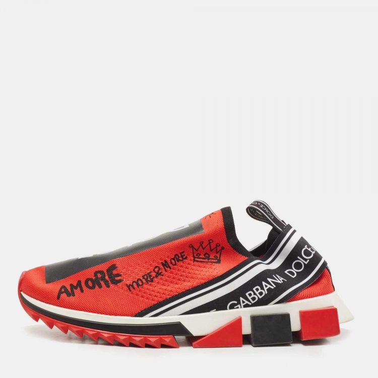 Dolce & Gabbana Red Fabric Graffiti Logo Sorrento Slip On Sneakers Size 44