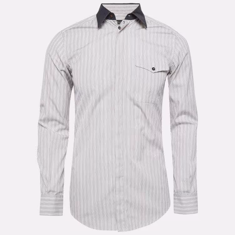 Dolce & Gabbana White Pinstripe Cotton Long Sleeve Shirt S