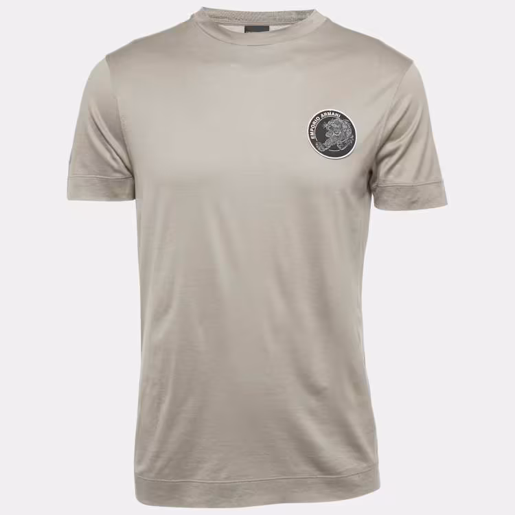 Pre Owned Emporio Armani Grey Knit Logo Patch Detail Crew Neck T-Shirt M