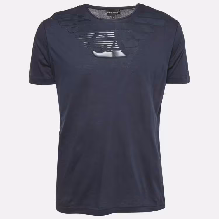 مملوكة مسبقًا Emporio Armani Logo Print Navy Blue Cotton Round Neck T-Shirt XL