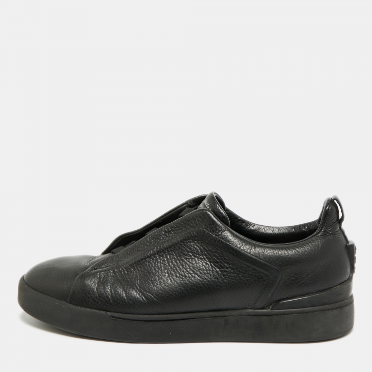 Ermenegildo Zegna Triple Stitch Size 44.5 Black Leather Slip On Sneakers
