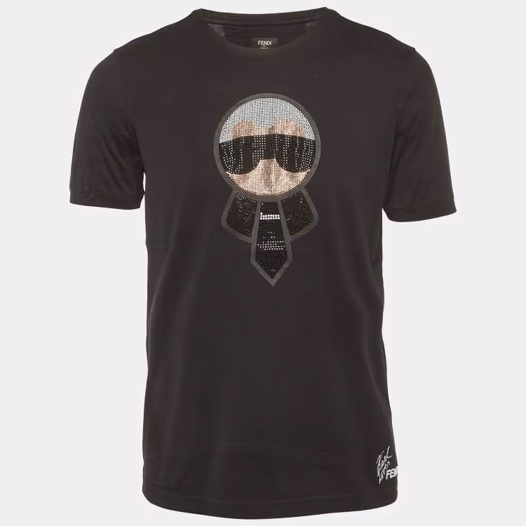 Fendi Black Rhinestone Embellished Jersey T-Shirt L