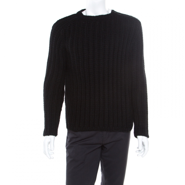 Gucci Black Chunky Rib Knit Wool Mohair Crew Neck Sweater S