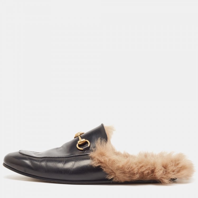 Gucci Black Fur and Leather Princetown Mules Size 43