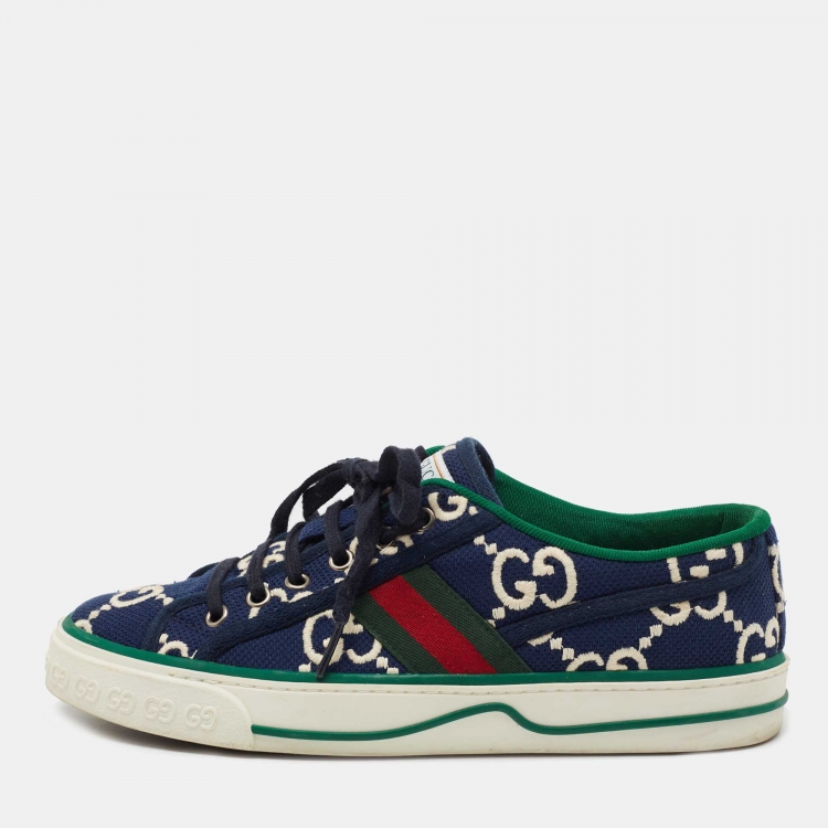 Gucci Navy Blue/White CC Canvas Tennis 1977 Sneakers Size 39