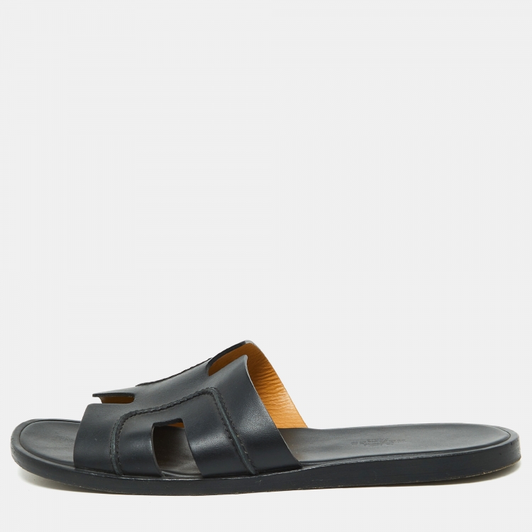 Hermes Black Leather Pique Izmir Flat Slides Size 42.5