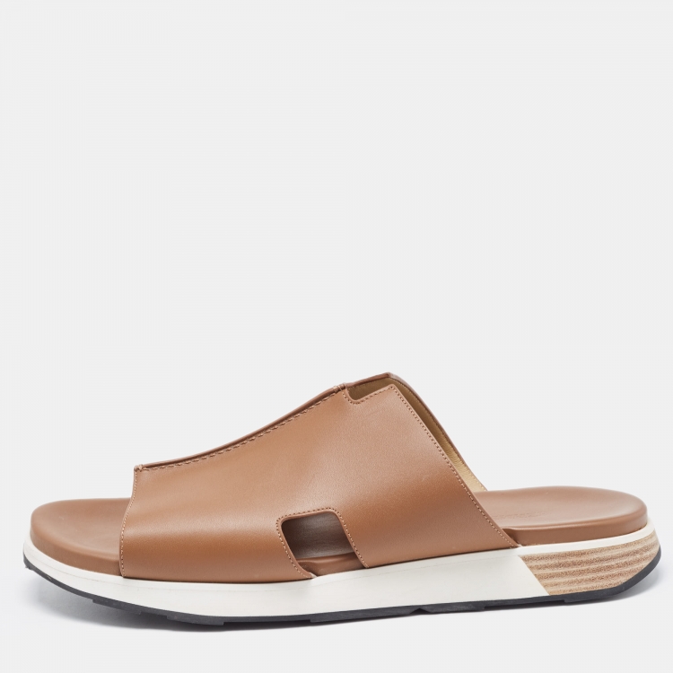 Pre Owned Hermes Brown Leather Pharaon Slides Size 45