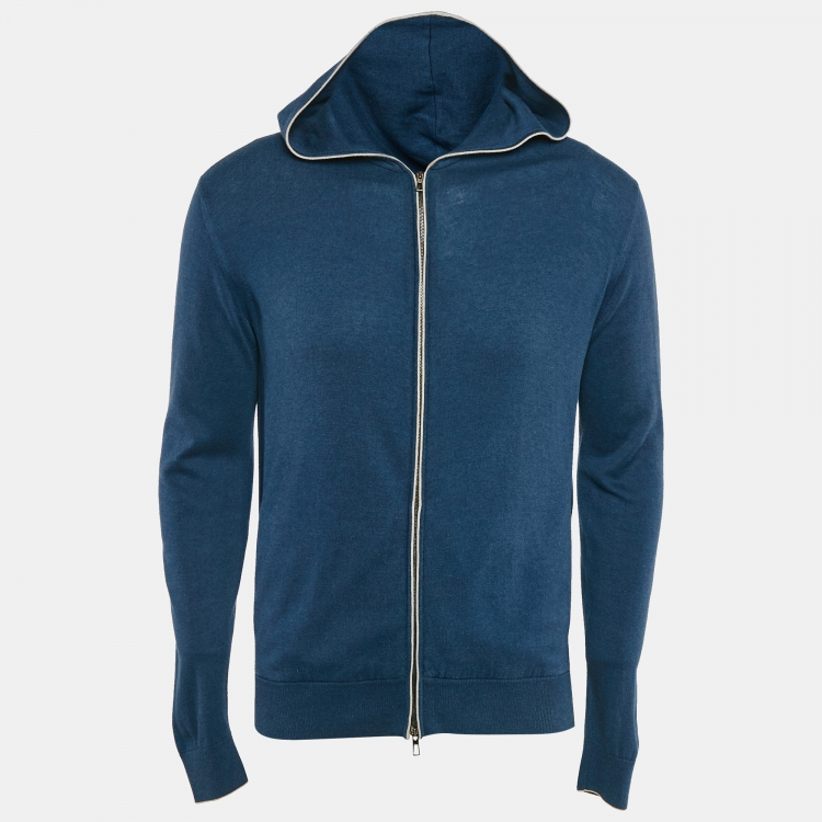 Loro Piana Blue Cashmere and Cotton Knit Hooded Leasure Bomber Jacket M