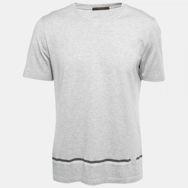 Louis Vuitton Grey Cotton Stripe Detail Crew Neck T-Shirt L