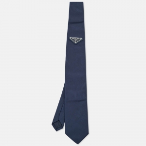 Prada Navy Blue Logo Re-Nylon Gabardine Slim Tie